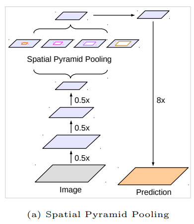 1. Spatial pyramid pooling 모듈 사용 (multi-scale contextual 정보 추출 가능)