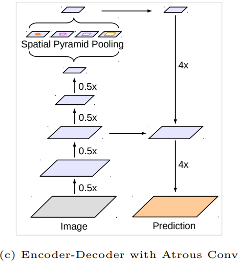 이 논문에서는 위 두 가지의 장점을 합치는 아이디어를 사용하였다. 크게는 encoder-decoder 구조를 사용하였고, encoder에서 atrous spatial pyramid pooling 모듈을 사용해서 multi-scale 문맥정보를 통합할 수 있도록 했다.